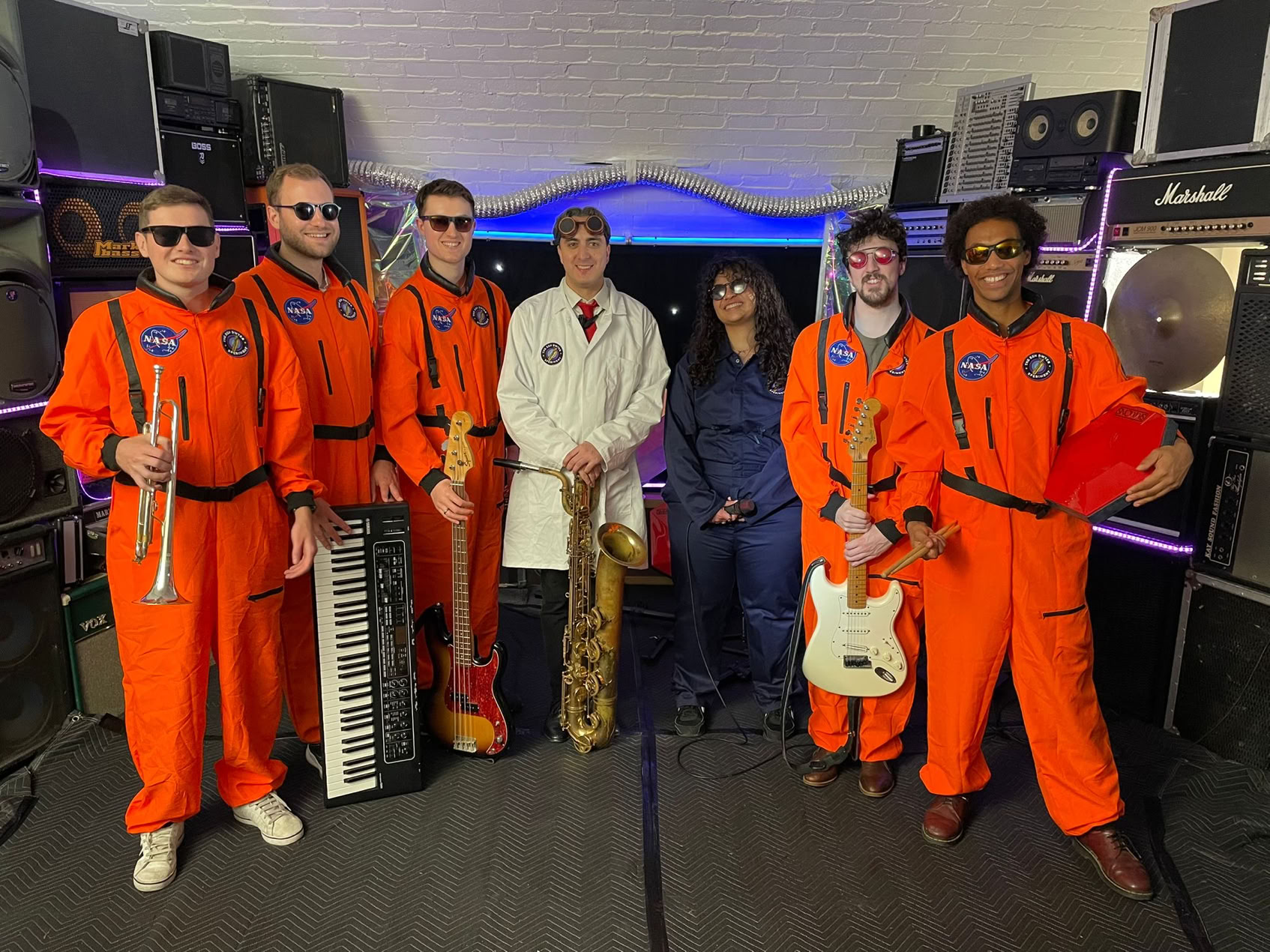 At its core, the group comprises: drums, bass, guitar, keys, baritone sax and trumpet for a powerful musical experience.